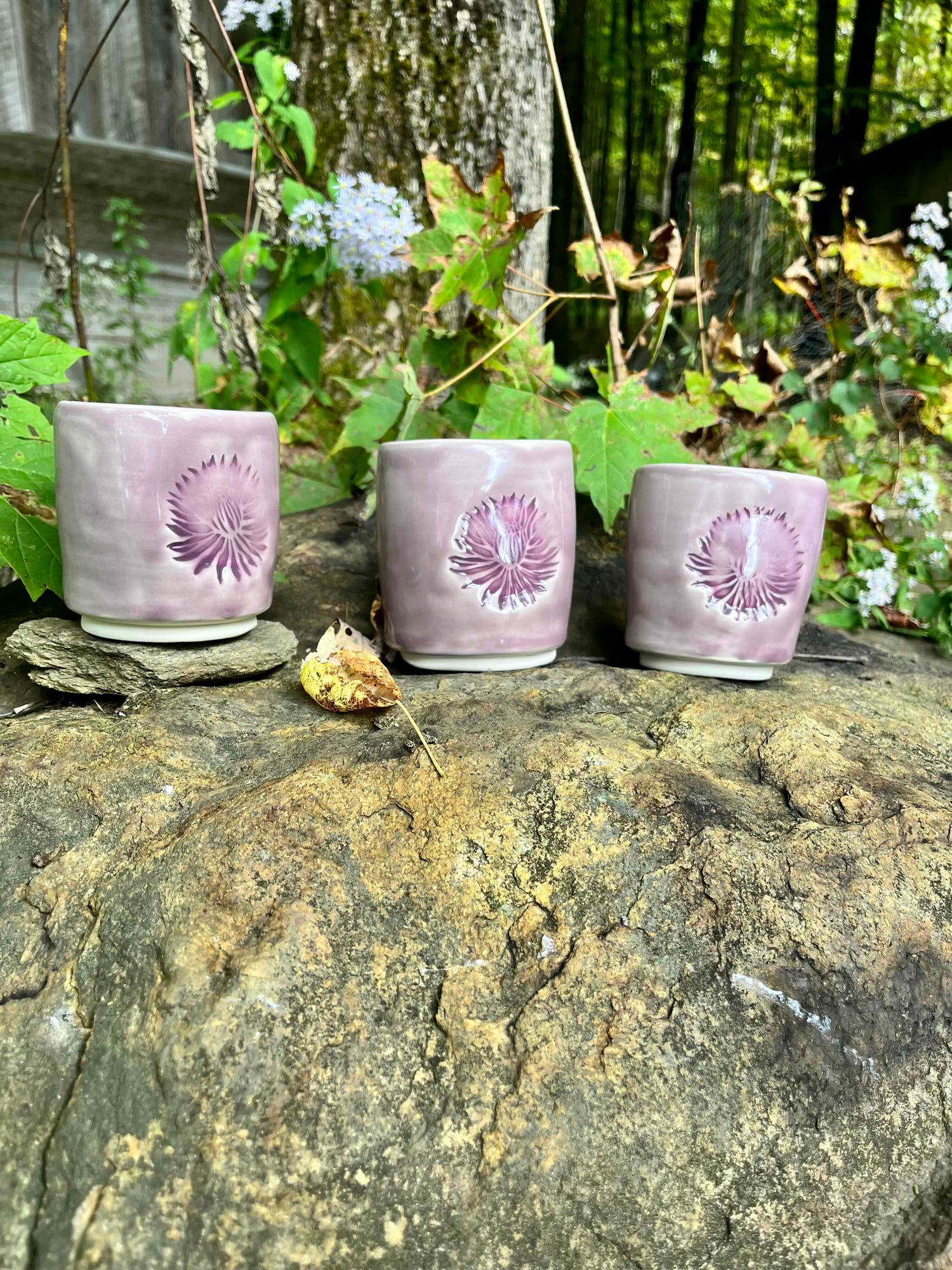 Set of Three Purple Chrysanthemum Cups